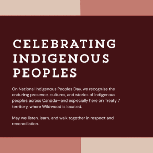 Today we honour and celebrate the history, cultures, and contributions of First Nations, Inuit, and Métis peoples. Wildwood is located on Treaty 7 territory, and we are grateful to live, work, and gather on this land.
